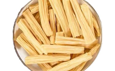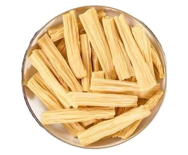 The Gao'an dried tofu skin has a light yellow tint with a slight shine. Its interior is hollow, similar to rigatoni. It is known for its ability to withstand prolonged cooking without becoming mushy.