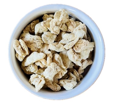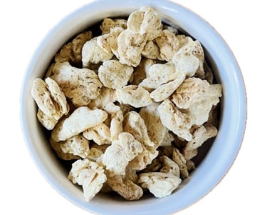 Textured soy protein is typically made from soy protein flour or soy protein concentrate that has been processed to create a product with a fibrous, meat-like texture. It is available in various forms such as chunks, flakes, or granules, and can be flavored or seasoned to suit different culinary applications. Valued for its high protein content, low cost, and long shelf life, textured soy protein is a popular ingredient in many vegetarian foods.