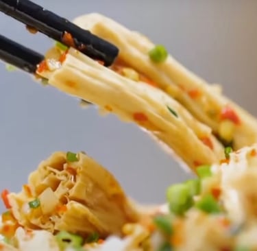 将腐竹、葱末、陈醋、辣椒粉加入锅中,搅拌均匀;