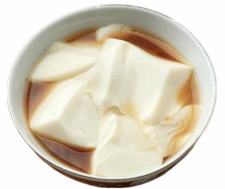 滤掉姜片,把糖浆浇在豆花上,请慢用!