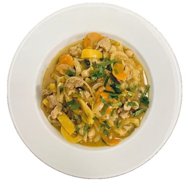 入口 :牛肉块慢炖至口感柔嫩,豆腐则充分吸收了炖肉汤汁的浓郁滋味。同时,焦糖化的洋葱和香料增加了味道的层次感。