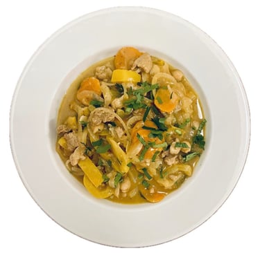 入口 :它口感丰足暖润, 实为冬日雨夜的暖心良伴。蔬菜丁与香干软硬相交的质地和谐融合,培根和豆腐的烟熏味则令炖菜的滋味更富有层次,胡萝卜则增添了天然的甜味。静置过夜明显地使得炖菜味道更加浓郁圆润——这一夜绝对值得等待。